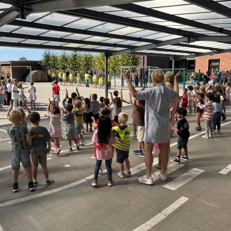 We gingen Sinterklaas en de Pieten opwachten langs de straat! Daarna iedereen richting de speelplaats... Tijd om toch eens aan SabotagePiet zijn oren te trekken.... maar wat bleek: er waren 2 SabotagePieten aan het werk geweest! Sinterklaas geloofde zijn oren niet en wou de Pieten onmiddellijk terug sturen naar Spanje... maar dat wouden de kinderen toch ook niet! Sinterklaas gaat ze extra klusjes in Spanje laten doen als straf voor hun flauwe Sabotage-"moppen"!
